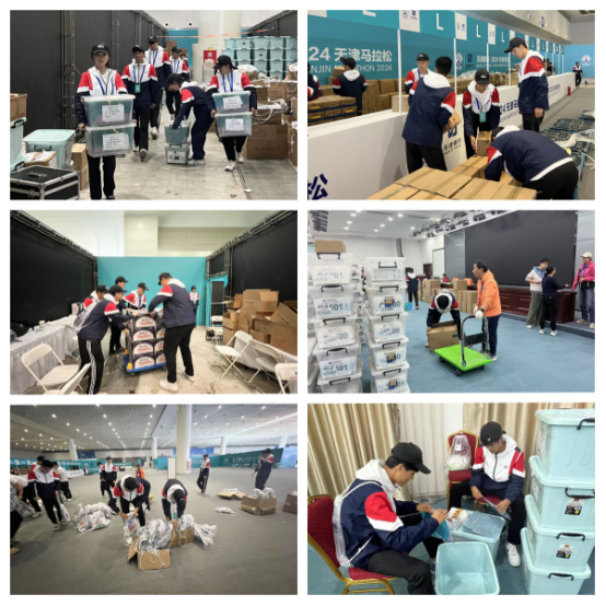 物品发放会现场,学院青年志愿者活跃在各个点位。从会场布置、号码布分装发放、选手完赛物资的分装,到内外场引导、身份核验、芯片核验、物资装包发放、资料运输、人脸识别核验,处处闪现着他们忙碌的身影,志愿者们发挥专业所长,秉承热情周到、细致耐心的服务理念为选手们顺利参赛提供保障,展现了天津青年青春蓬勃的朝气和良好精神面貌。