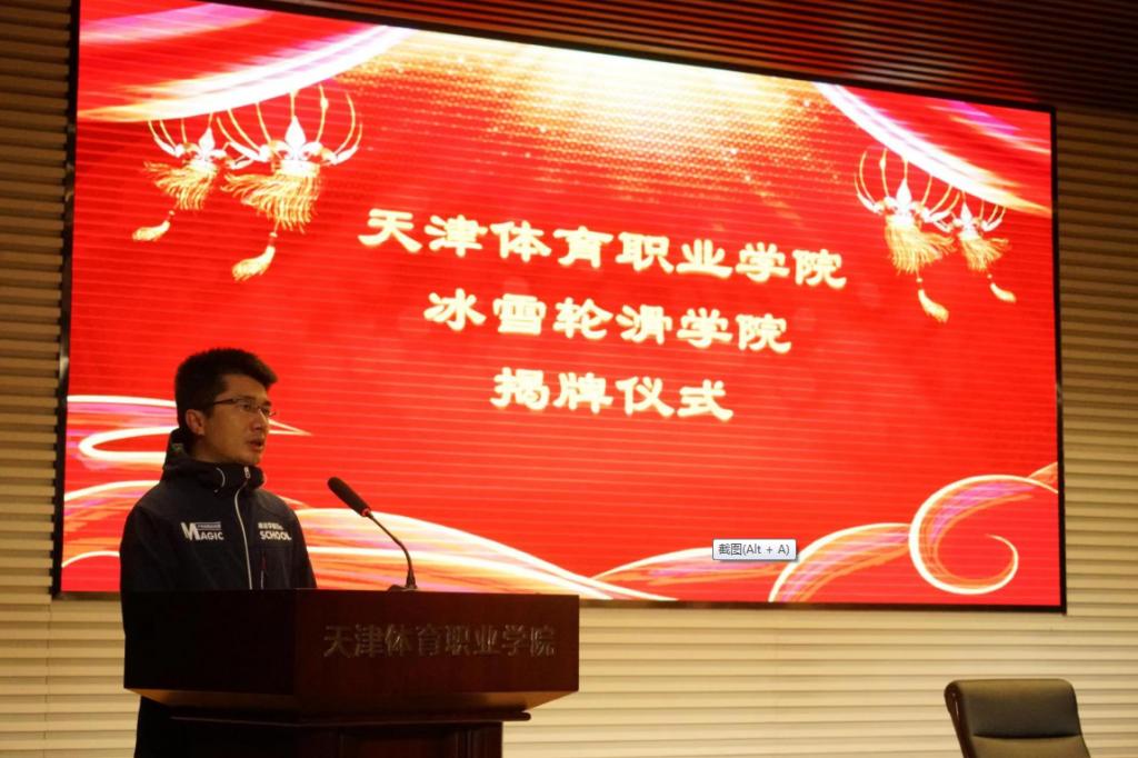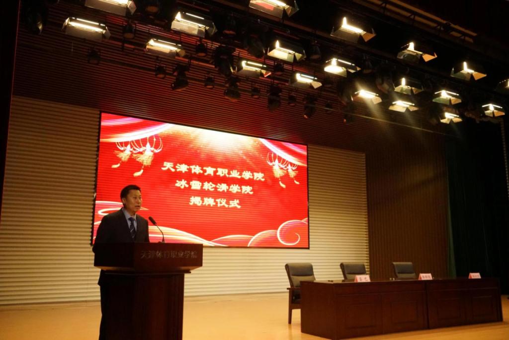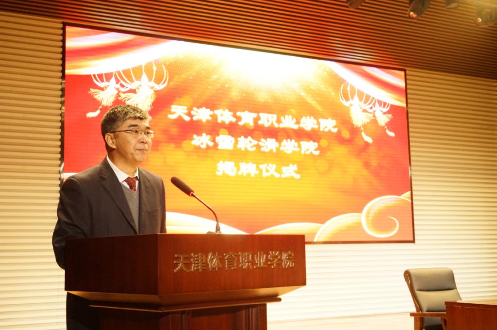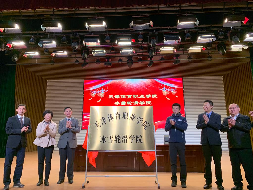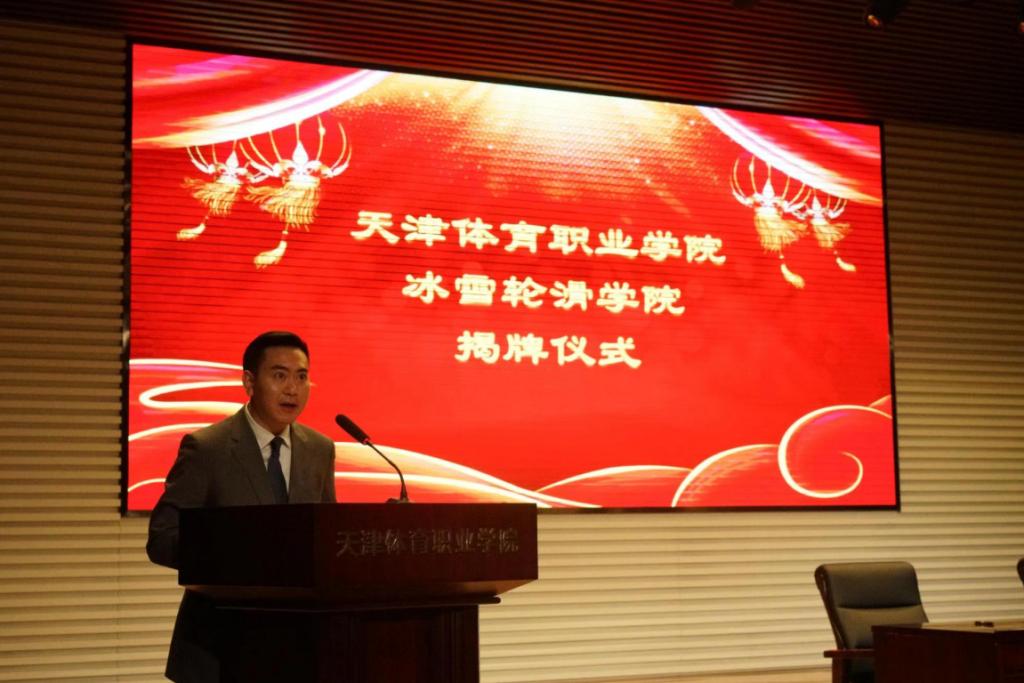 揭牌仪式上,张欣代表市体育局致辞,指出冰雪轮滑学院揭牌仪式,是用实际行动践行习近平总书记关于推动冰雪运动发展系列讲话精神,也是进一步加强校企合作办学的实践举措。他对冰雪轮滑学院未来发展提出要求,一是要抓住机遇,加快学院专业发展;二要以职业发展目标为导向,精准专业发展定位,提升人才培养质量;三要进一步深化产教融合,探索校企合作新机制;四要携手聚力,共同推动天津体育产业发展。