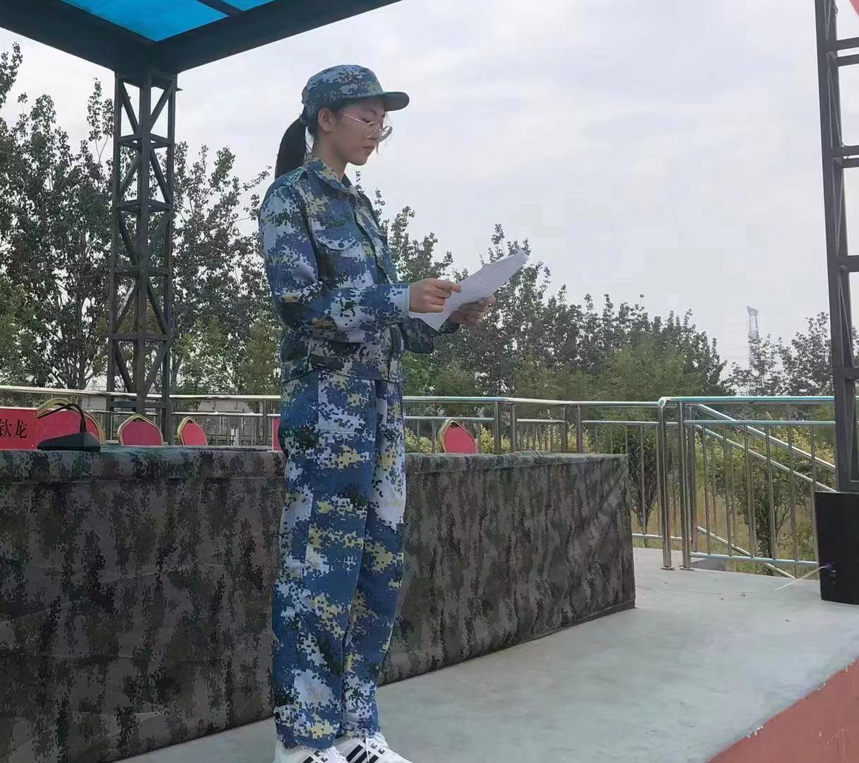 在开营仪式上,基地教官向体职院同学授旗,并为我院学生进行了精彩的军事技能展示,同学们不时报以热烈的掌声,现场气氛十分热烈。随后,军训基地领导及教官代表进行讲话,体职院2019级新生代表张雅婷登台发言。