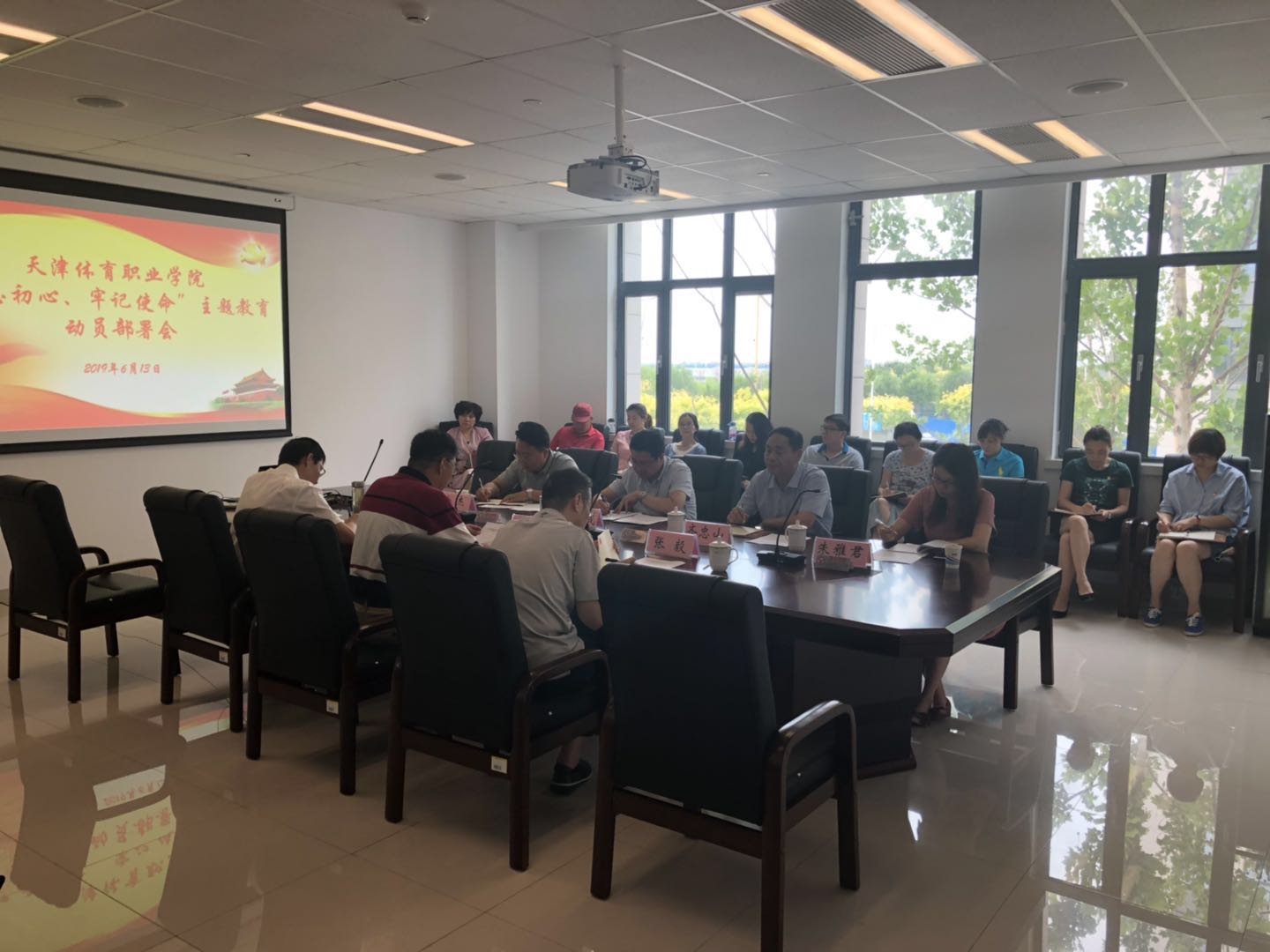 6月13日,best365足球官网召开“不忘初心、牢记使命”主题教育动员部署会,学院党委书记王伟作动员部署讲话、院领导班子成员,各党支部书记、各处室、系部负责人、教师代表共计20余人参加会议。会议由学院纪委书记沈茹劼主持。局党委“不忘初心、牢记使命”主题教育第三指导小组一行四人莅临指导。