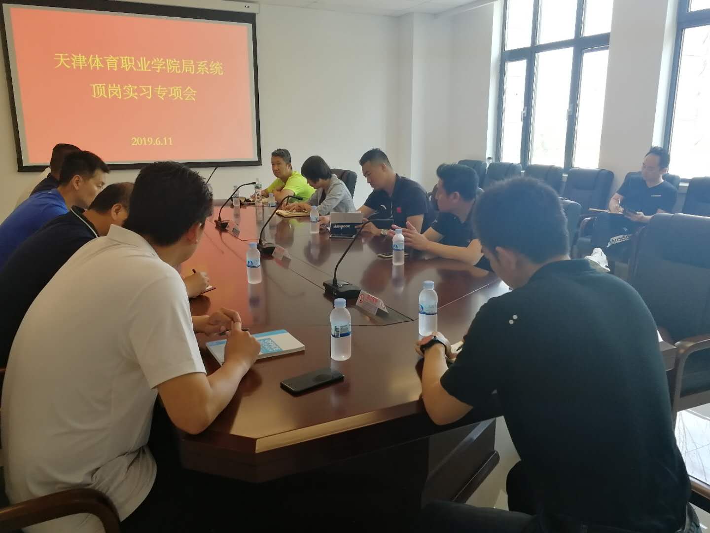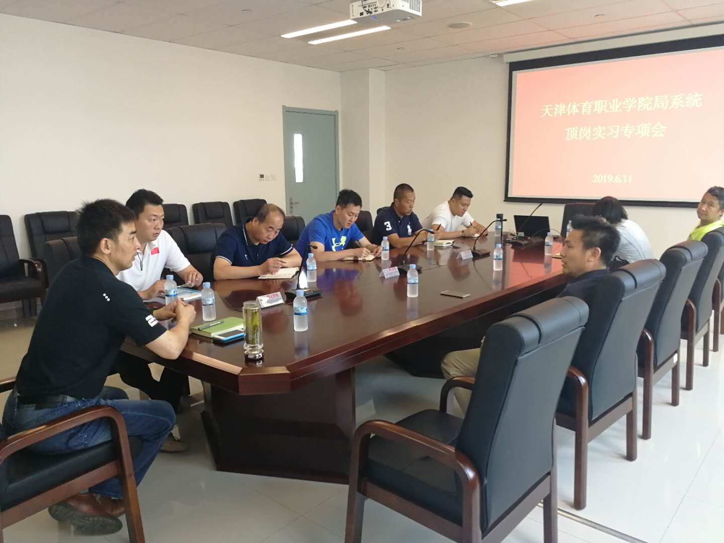 6月11日上午,由天津市体育局宣教法规处牵头,best365足球官网局系统顶岗实习专项会在二楼会议室召开。自剑中心、举摔柔中心、排管中心、武射中心等11个训练中心负责同志参加了本次会议。