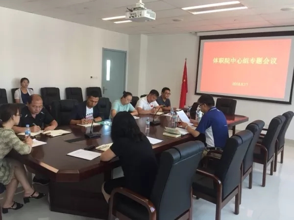 018年8月17日上午,体职院召开理论中心组扩大会,学院在校领导班子成员出席,各处室、系部负责人,各党支部书记参加。