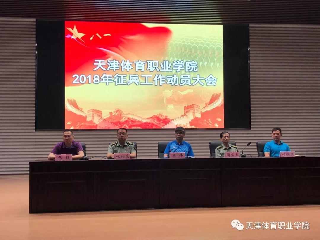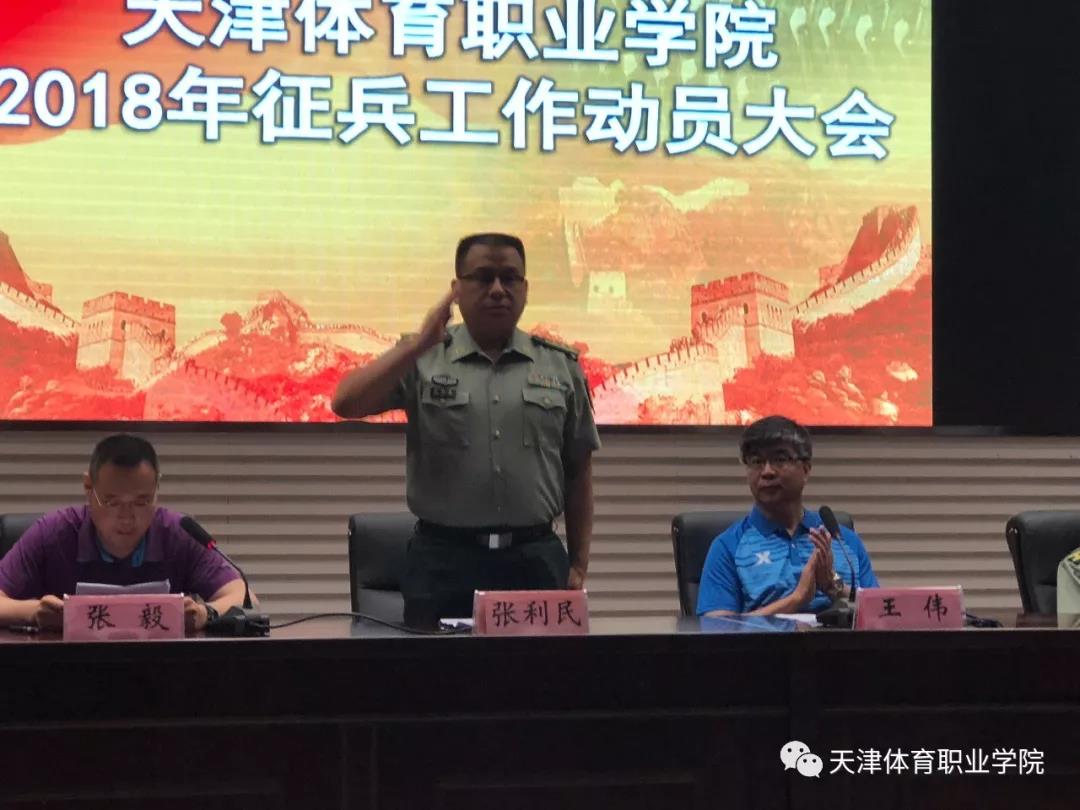 6月22日下午,体职院报告厅召开best365足球官网2018年大学生征兵工作动员大会。天津市静海区人民武装部部长周宝玉、政委张利民,学院党委书记王伟、院长刘钦龙出席会议,大会由学院副院长张毅主持,学院相关部门负责人、辅导员、全体学生参加大会。