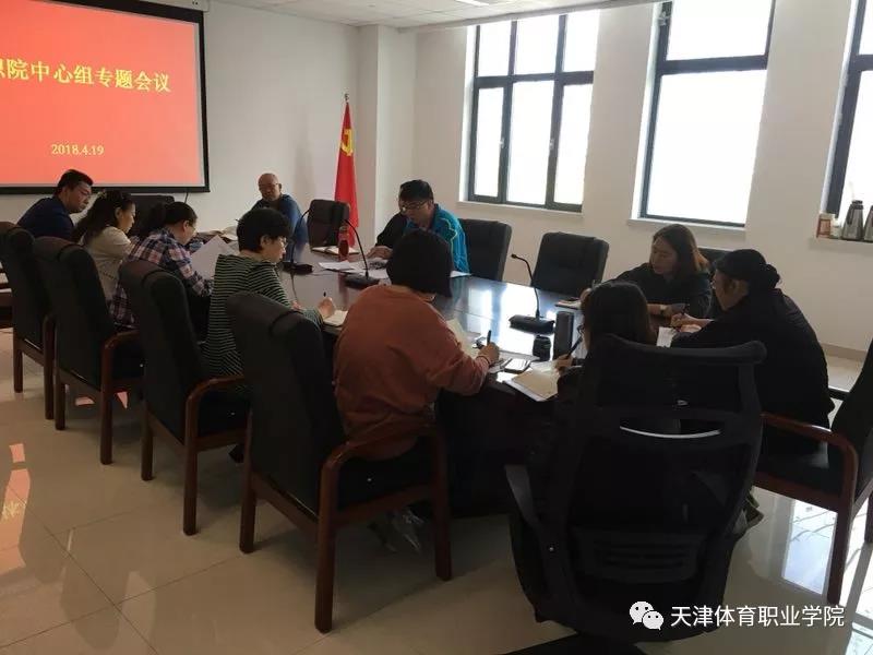 2018年4月19日,体职院召开中心组专题会议。会议由院党委书记王伟主持,学院副院长张毅出席,各处室、系部负责人、党支部书记、委员参加。