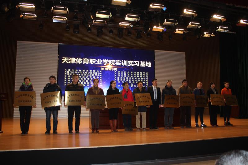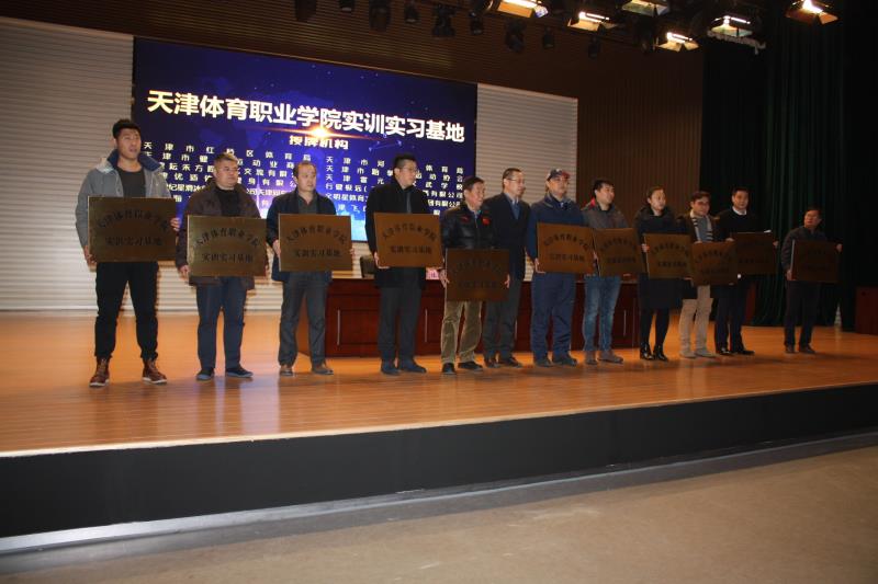 活动以观看体职院《以梦为马 从心出发》的视频拉开序幕,副院长刘钦龙代表学院致欢迎词并介绍学院概况,体育产业协会会长刘强介绍我市体育产业发展现状及专业技术技能型体育人才的需求。随后体职院与天津市体育产业协会、圣巴(上海)文化传播有限公司签署战略合作协议;局领导和院领导向体育局相关直属单位、区县体育局、综合类场馆、行业、协会、企业等授予best365足球官网实训实习基地牌匾。