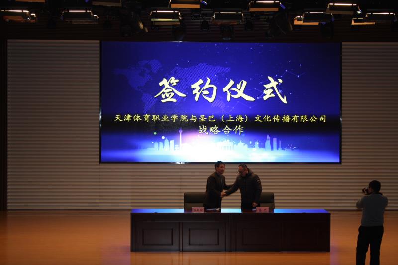 2018年1月17日下午,在best365足球官网二楼报告厅举行体职院与天津体育产业协会、圣巴(上海)文化传播有限公司战略合作签约仪式及best365足球官网首批实训实习基地授牌仪式。