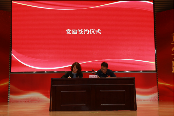 体职院党委书记杨军、天津市体操武术射击射箭运动管理中心党总支书记、主任黄吉分别致辞,对双方创新基层党建工作载体,实现党建共建,推动合作共赢和共同发展表示支持和感谢,双方将以“优势互补、资源共享、共同提高”为宗旨,积极探索体教融合特色道路,坚持以高质量党建助力高质量体育人才培养,为天津体育教育事业贡献力量。随后双方签署党建共建协议。