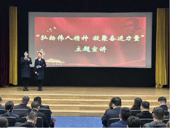 随后,周邓纪念馆宣讲员进行“弘扬伟人精神 凝聚奋进力量”主题宣讲。带领大家重温老一辈无产阶级革命家的感人历史,缅怀周恩来、邓颖超两位伟人波澜壮阔、光辉灿烂的一生,感受他们披荆斩棘的革命心路、坚守信仰的崇高品质、鞠躬尽瘁的革命精神和艰苦朴素的优良作风。