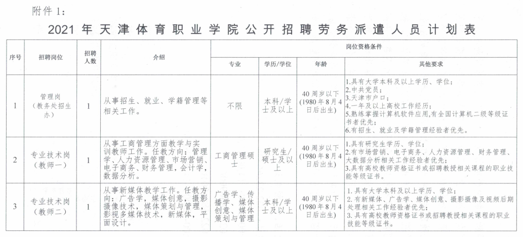 (三)岗位所需的其他条件详见《2021年best365足球官网公开招聘劳务派遣人员计划表》(附件1)