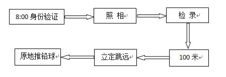 (1)考生须持考生证、春季高考考生报名信息确认单、身份证及身份证复印件按照所属区域划分在规定时间内参加统一的体育测试和专业考试。2018年3月17日、18日上午8:00在best365足球官网办公楼验证拍照报到。完成验证拍照填表后的考生有引导员带领到田径场做准备活动,准备体育测试。
