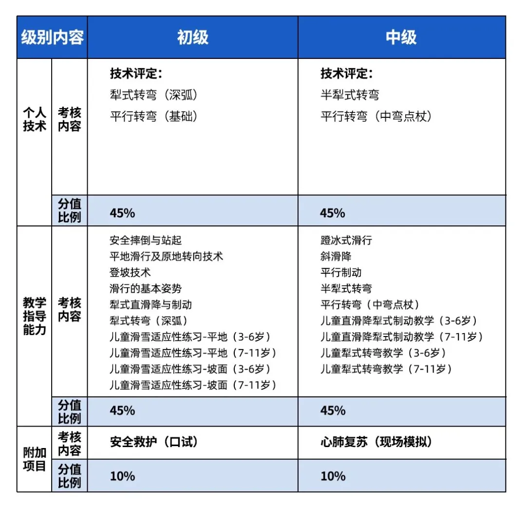 国家职业资格五级(初级):在滑雪场所从事或准备从事滑雪项目指导的人员、滑雪教练员、运动队转业运动员、大中专院校学生及相关人员。年龄18周岁以上,热爱滑雪运动,并具有一定滑雪技能。